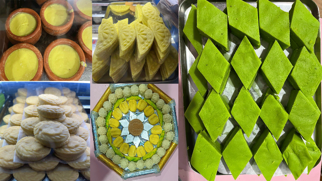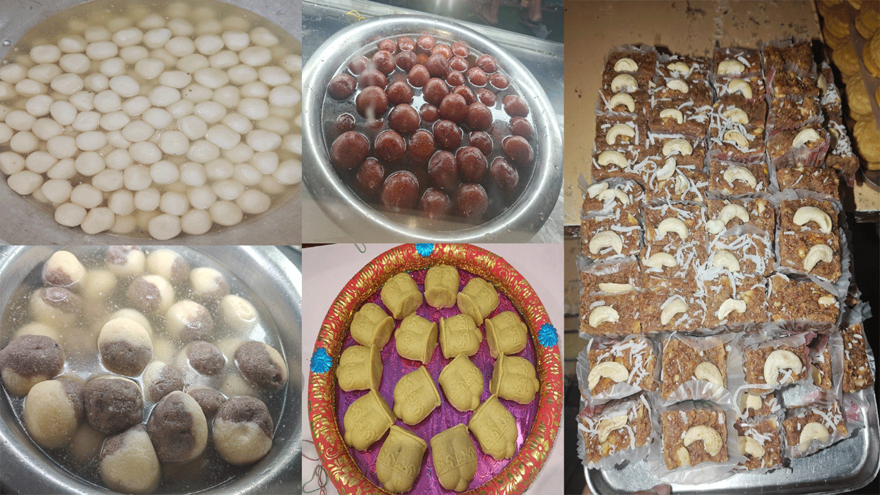 The Bengal confectioners gear up to serve the best quality of morden sweets, besides the conventional sweets for the customers. The traditional sweets like Rasagolla, Jilipi, and sweet curd sell high, but during this Bengali festival Bhai Phota, sweet makers make special types of sweets with innovative ideas.Ā Ā