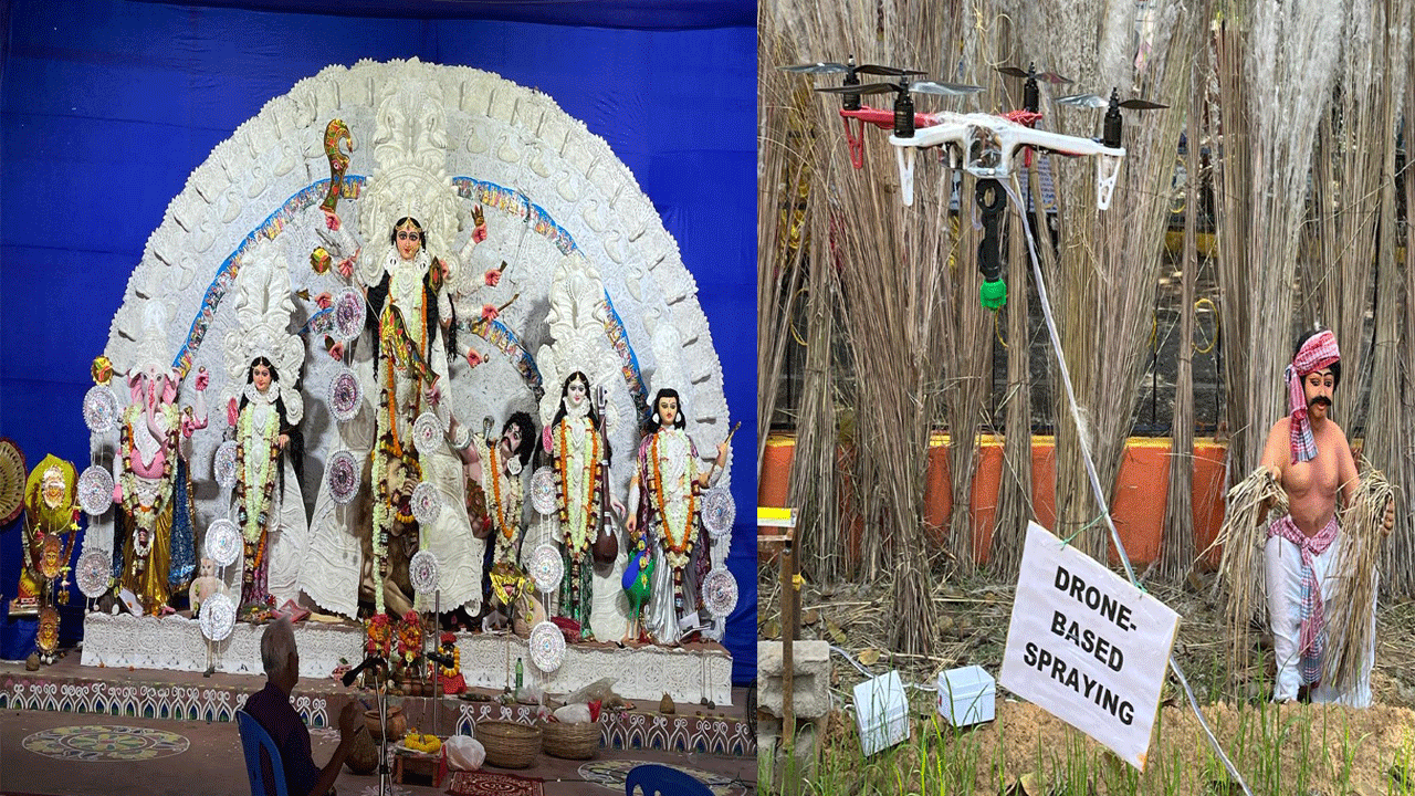 The smart village is equipped with modern living and technology aided cultivation systems alongside harvesting, cooking and waste management technology and these altogether comprised the theme of the Durga puja organised by the scientists, and technicians of a CMERI.