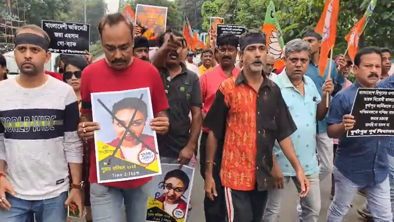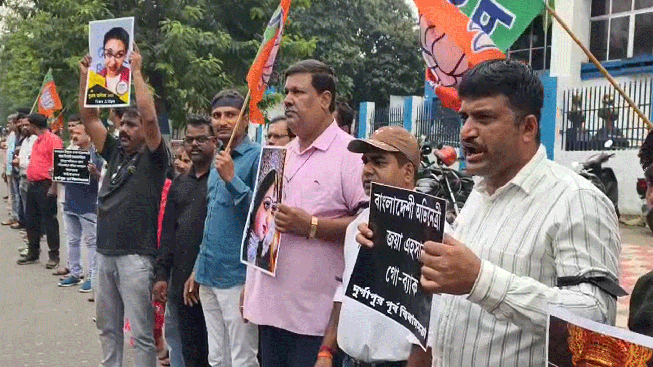 Bangladeshi actress Jaya Ahsan's appearance as a special guest at the Durga Puja Carnival in Durgapur raised political tensions.The BJP erupted in protest. BJP workers and leaders started a human chain and protest program in front of the Sub-division Administrator's office and SDO bungalow in Durgapur. BJP's district vice-president Chandrashekhar Banerjee led the BJP's protest program. BJP district vice-president Chandrashekhar Banerjee alleged, "Inviting a Bangladeshi citizen to the stage of the state government's Puja Carnival is a very irresponsible and questionable decision. Ignoring the state's own artists and culture and bringing in Bangladeshi film-star to show glamour is an insult to Bengali artists."