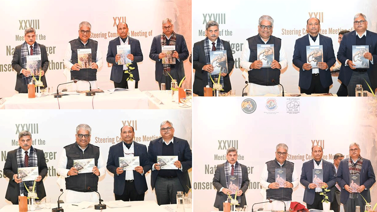On the occasion, Shri Yadav released six publications. These included Project Cheetah in India, highlighting the progress achieved under Project Cheetah through scientific management and international cooperation; the latest issue of STRIPES, NTCA’s outreach journal, focusing on modern technology, tiger dispersal, and the commencement of the sixth cycle of the All India Tiger Estimation (AITE); an NTCA booklet documenting India’s tiger conservation framework and institutional milestones; Tigerverse – Little-known facts from India’s Tiger Reserves, showcasing biodiversity, culture, and conservation stories from tiger reserves across the country; Best Practices in Captive Elephant Management for Elephant Handlers and the December 2025 issue of the TRUMPET Quarterly Journal.