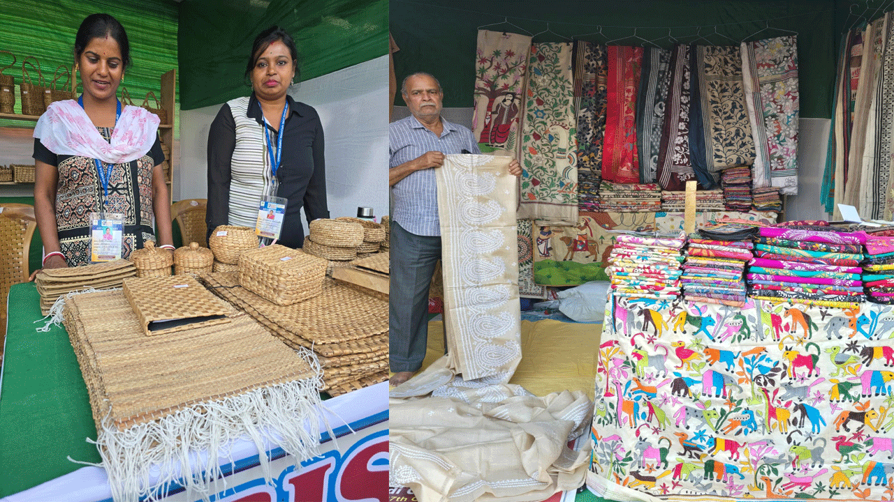 Over 150 artisans from 19 States across India are participating, showcasing diverse items such as Kantha Stitch sarees, Tussar silk sarees, Kosa silk, Kalamkari handloom sarees, wood carvings, handcrafted jewellery, Sohrai art, jute and cane products, and water hyacinth & Sital Patti crafts.