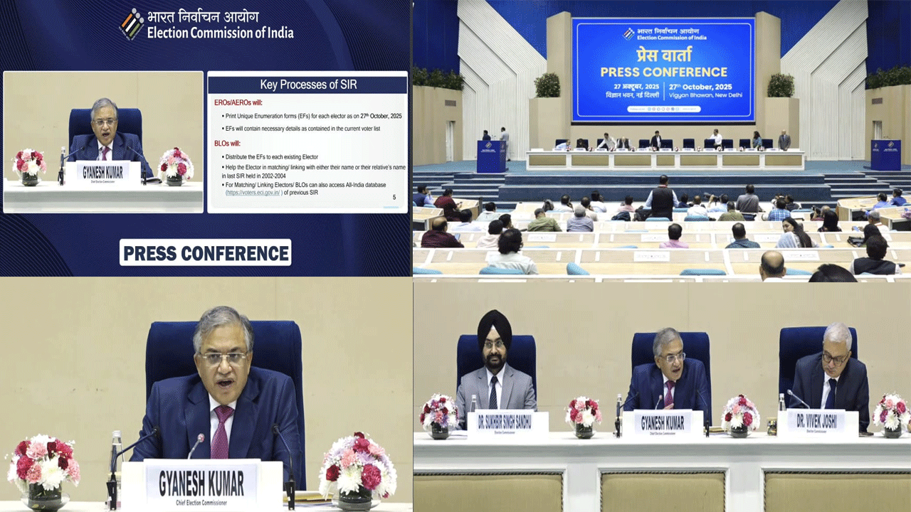 "In the states where SIR will be conducted, electoral rolls will be frozen at midnight today. Later, voters will be given unique enumeration forms with all details," Chief Election Commissioner Gyanesh Kumar said in Vigyan Bhawan this afternoon. He added: "Political parties have raised the issue of quality of electoral rolls on several occasions."